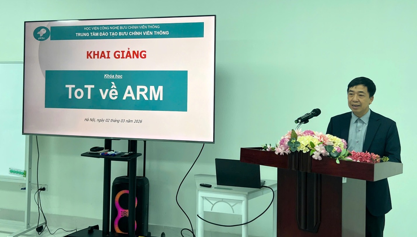 Ngày 02-14/03/2026, Trung tâm đào tạo Bưu chính Viễn thông đã tổ chức lớp bồi dưỡng “ToT về ARM” cho 12 học viên là các giảng viên Khoa Kỹ thuật Điện tử 1 và 2 của Học viện Công nghệ Bưu chính Viễn thông tổ chức tại Trung tâm đào tạo Bưu chính viễn thông.
