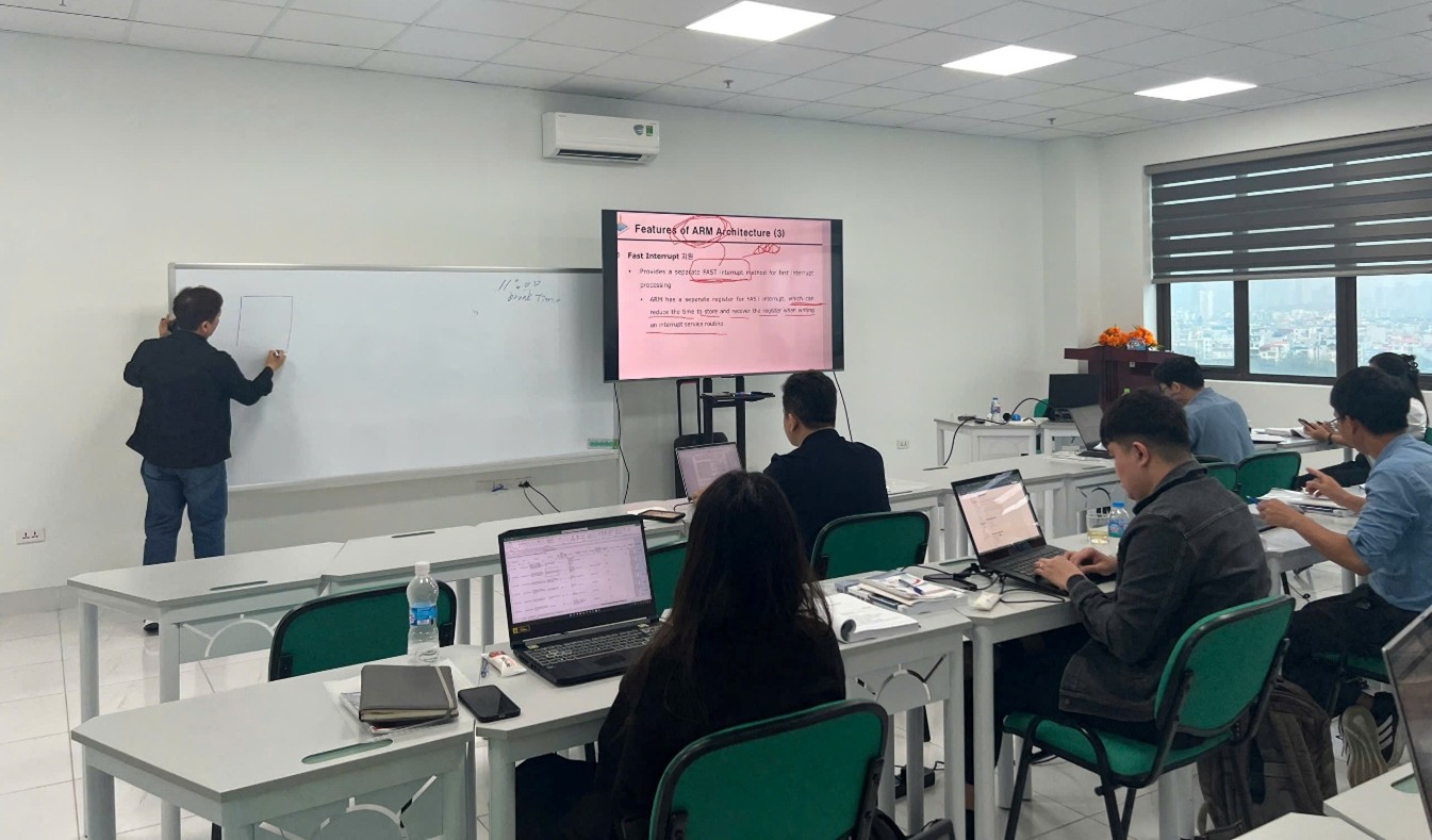 Ngoài ra, khóa học còn tạo cơ hội xây dựng và mở rộng mạng lưới chuyên gia, khi giảng viên được học tập và trao đổi trực tiếp với các chuyên gia của Hàn Quốc giàu kinh nghiệm như Seong Young Kim trong các lĩnh vực RTOS, Embedded Linux và kiến trúc bộ xử lý. Đây là nền tảng quan trọng để tăng cường hợp tác chuyên môn và nâng cao chất lượng đào tạo trong thời gian tới.
